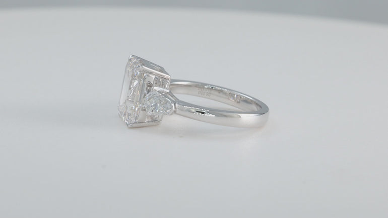 The main stone is a 5ct Emerald Cut Lab Diamond.